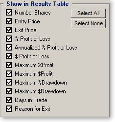 Check one or more of the trade statistics to display them in the results table.