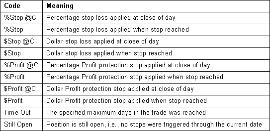 why the trade was exited will be shown in the results list. A summary of the abbreviations is provided