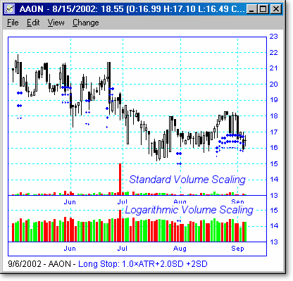 logarithmic scaling for the volume bars. This is useful if there are