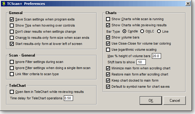 TCScan+ to show or not show volume bars on the chart. |