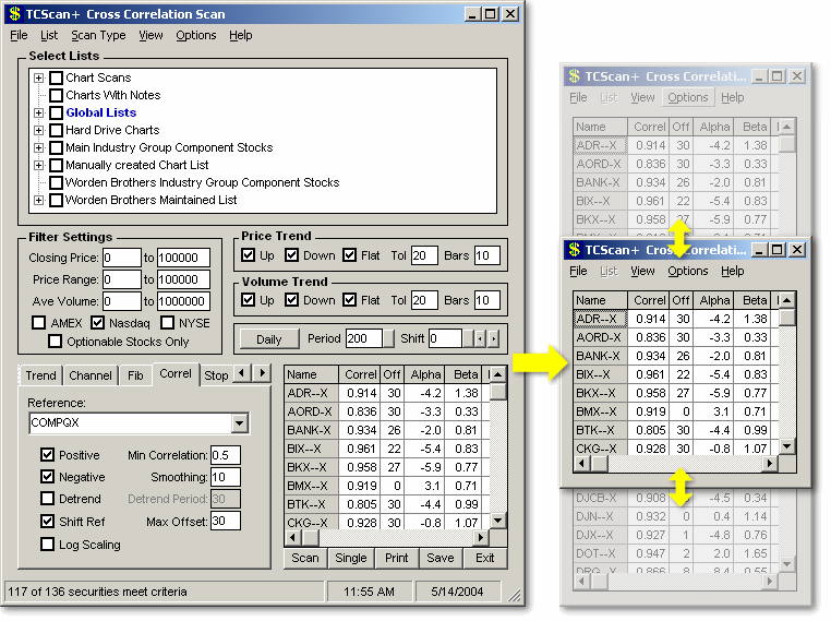 your selected lists to be displayed. The Chart will only include the price bars, not any